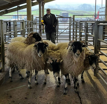 The consignment from J & S J Bland of Hawes sold Swaledale two- and three-crop ewes in lamb to the Bluefaced Leicester, topping at £235. Shearlings and one-crop ewes from the same home sold to £175, finding plenty of willing takers.
